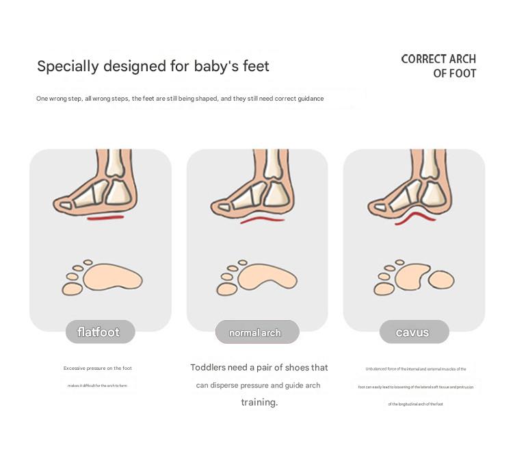 Our casual shoes are designed and developed based on the growth needs of children's foot bones at all ages. The design and development focus is to make the shoes as easy to move, bend and move freely as if wearing bare feet. Materials science and ergonomics are used in the design. The toe cap is scientifically and reasonably tilted; the sole is also made according to the shape of children's feet, and is soft, non-slip and wear-resistant; the heel completely covers the ankle and has a protective function; the movable insole can not only absorb sweat and breathe, but also resist pressure and shock, protecting children's heels and back of the head; the lining is seamlessly sewn to prevent children from cutting their feet when wearing shoes.